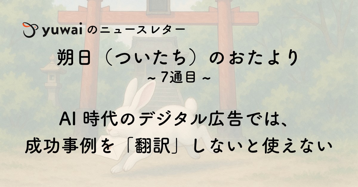 読者の皆さまこんにちは。Yuwai の田中です。Yuwai のニュースレター、『朔日(ついたち)のおたより』の【6通目】をお送りいたします。